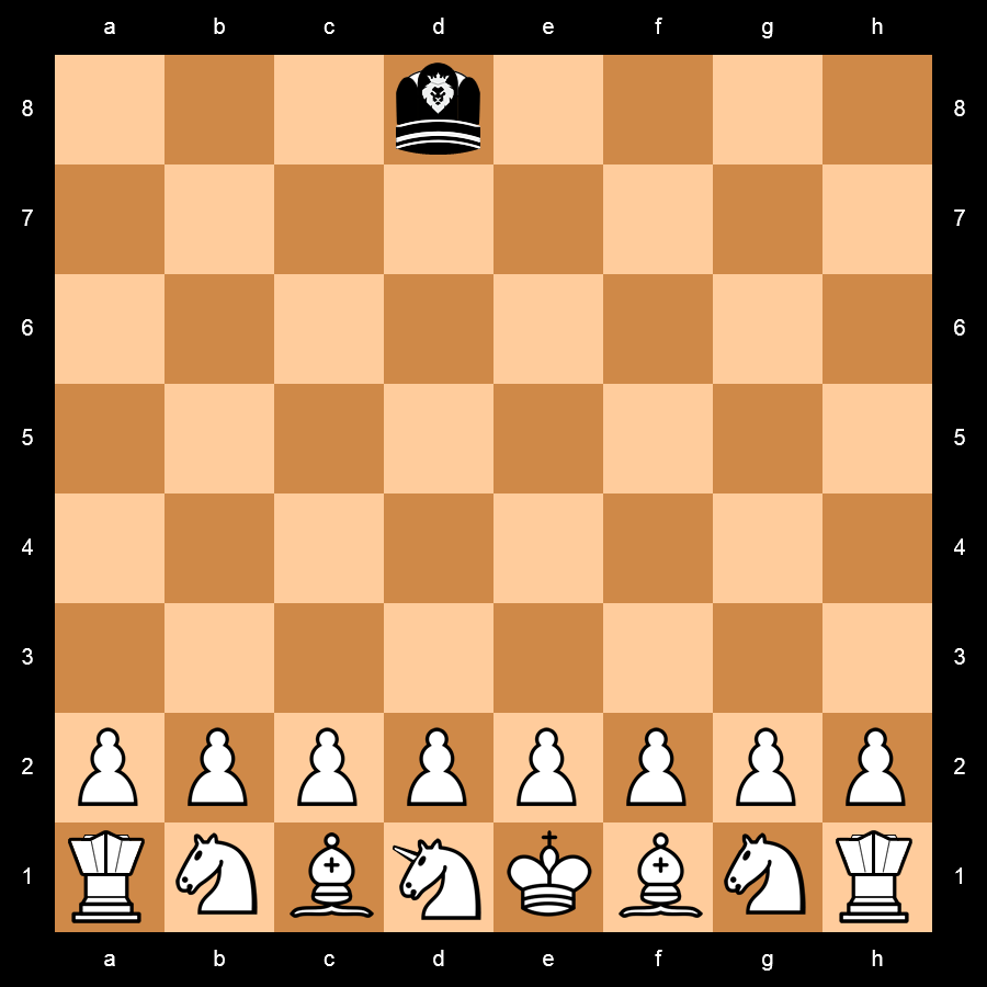 Black has only one piece : the Emperor, a powerful royal piece.