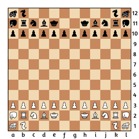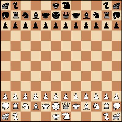 Then, Black freely decides where to place his King, Queen, Eagle and Lion on squares f1, g1, f2 and g2.